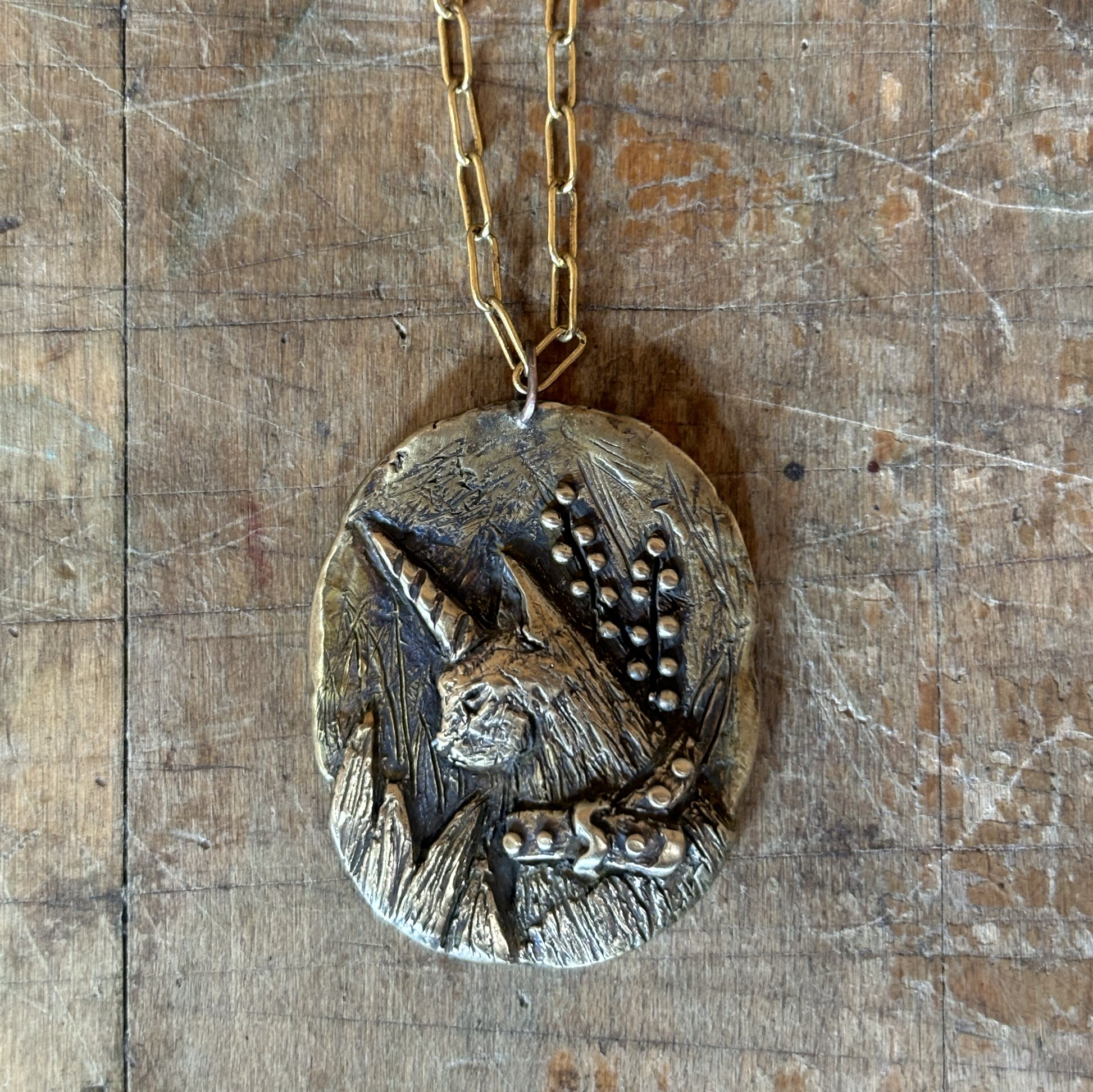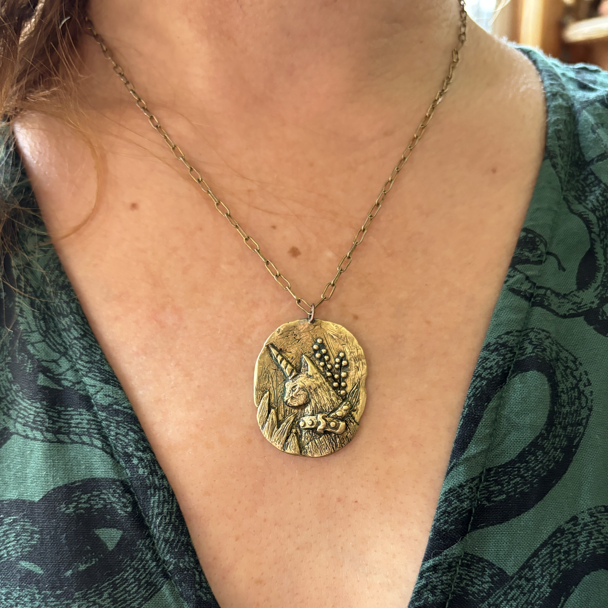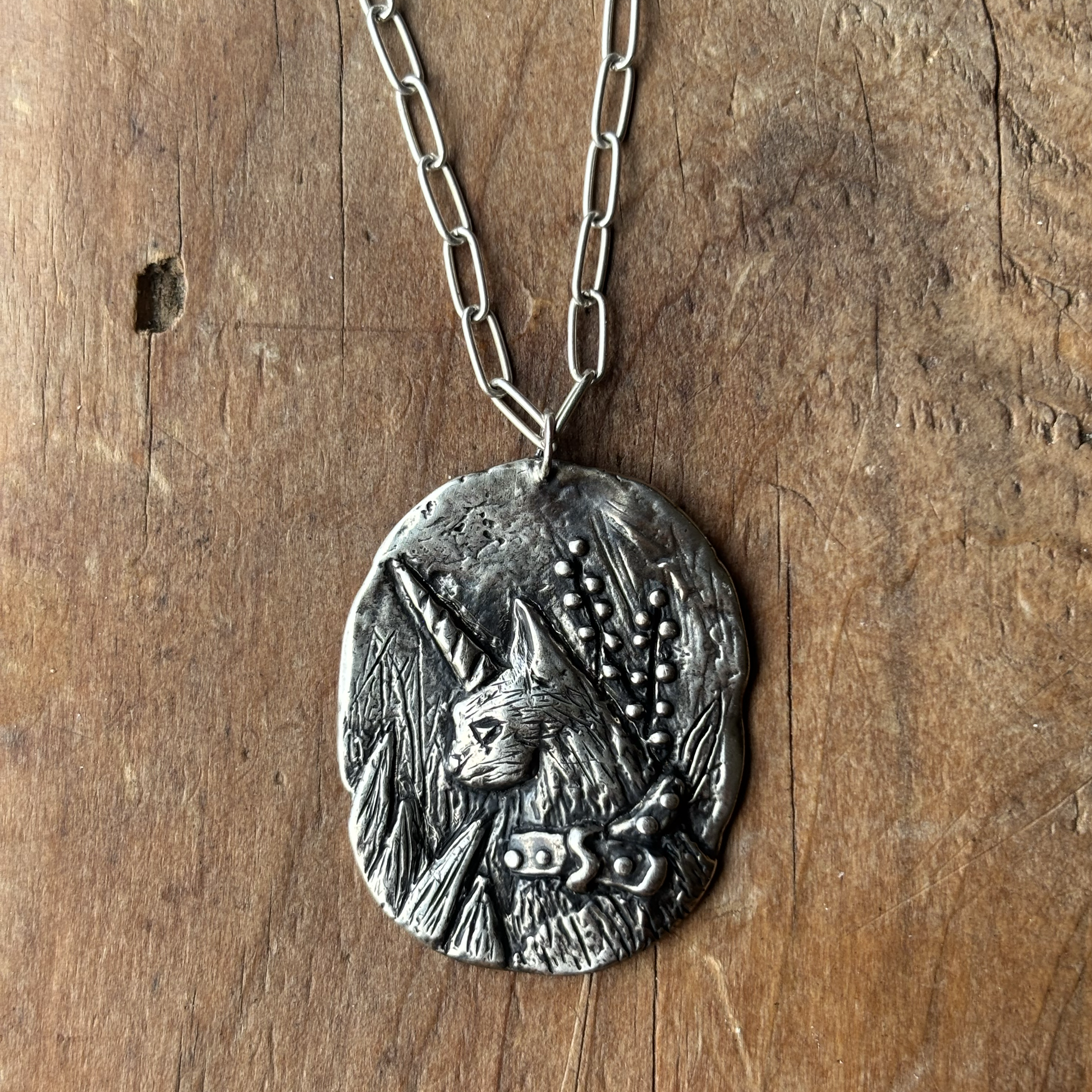 Inspired by the famous Unicorn Tapestries, this necklace is a dedication to my sweet 16-year old golden haired cat Alice. She's been dealing huge health problems since the year has started, I created this necklace originally to collect funds for her upcoming hyperthyroidism treatment, but because of her current weight and kidney problems, she can't get the treatment yet. So, it's not an urgency now, but if you like and buy this pendant, all the proceeds will go to either curing, or spoiling her and her brother (: