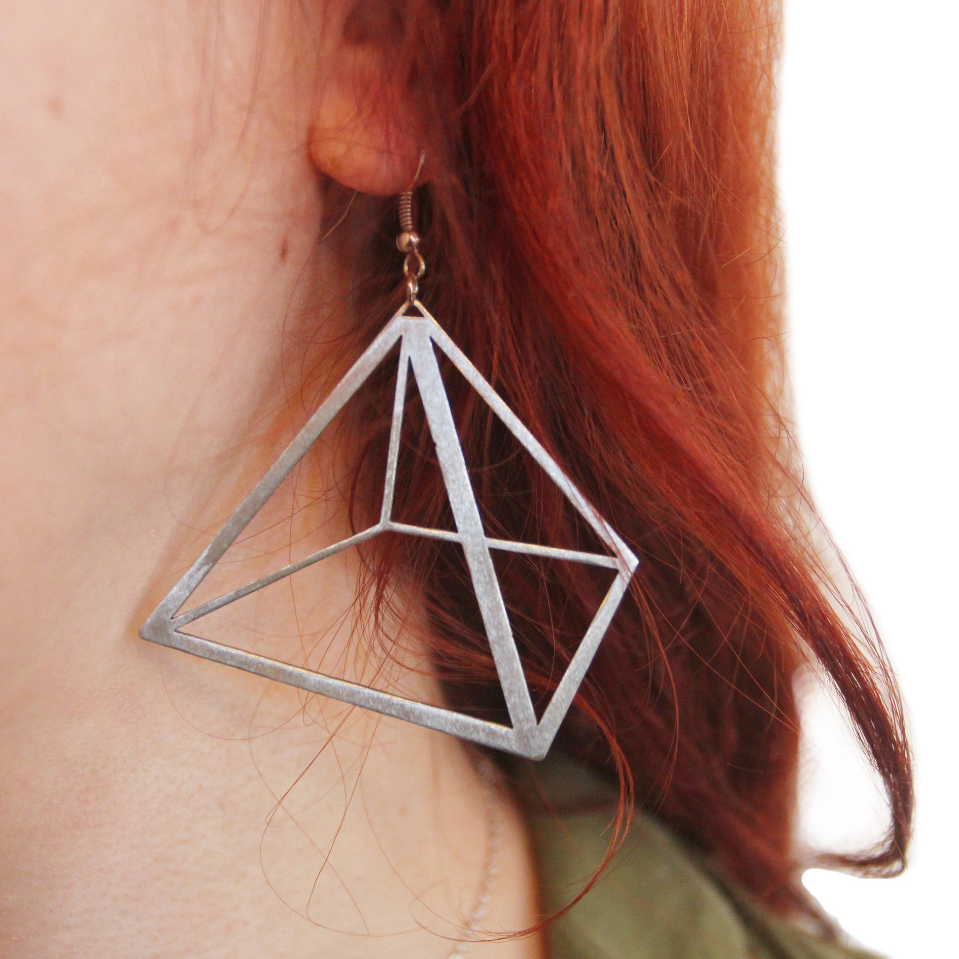 Stainless steel pyramid shaped earrings.