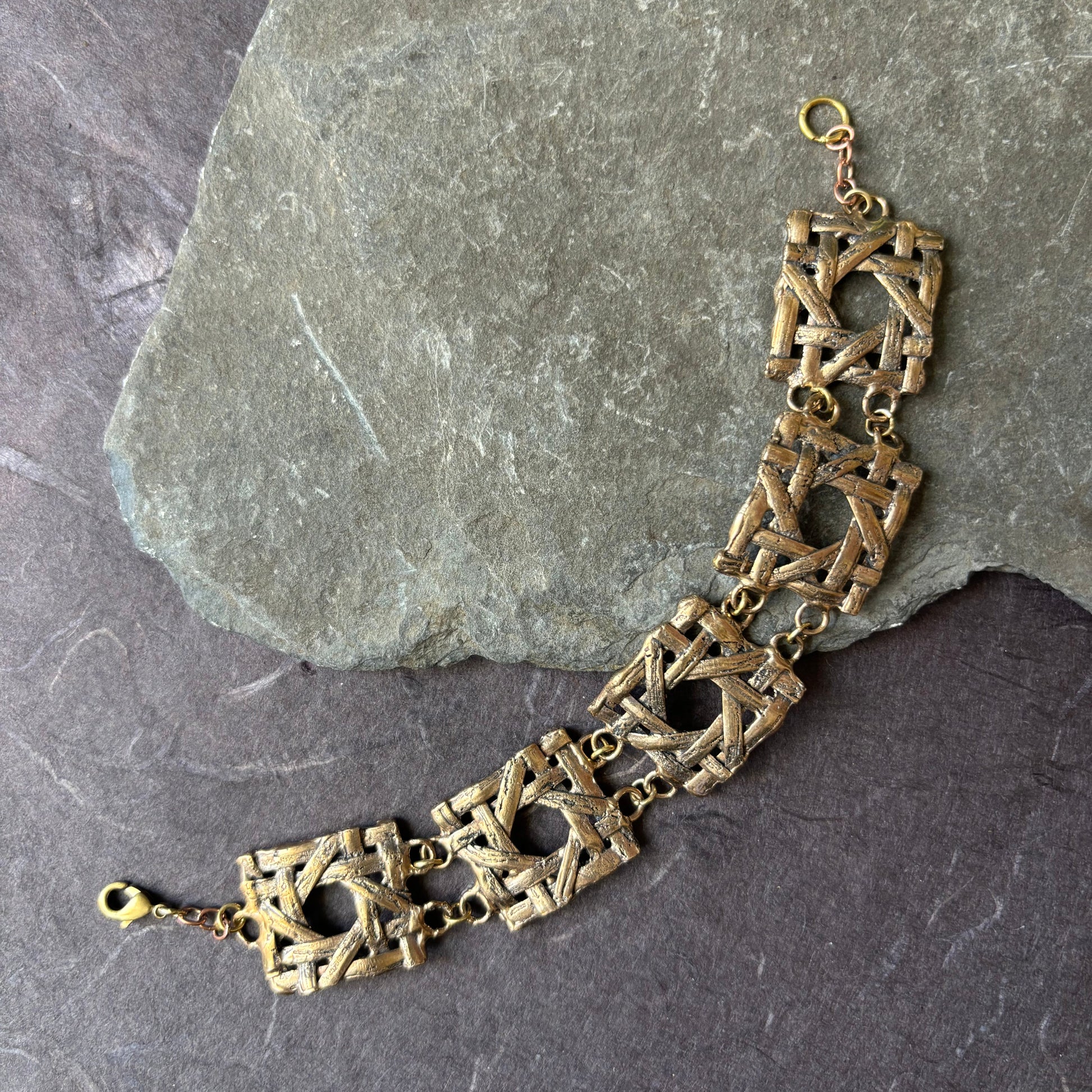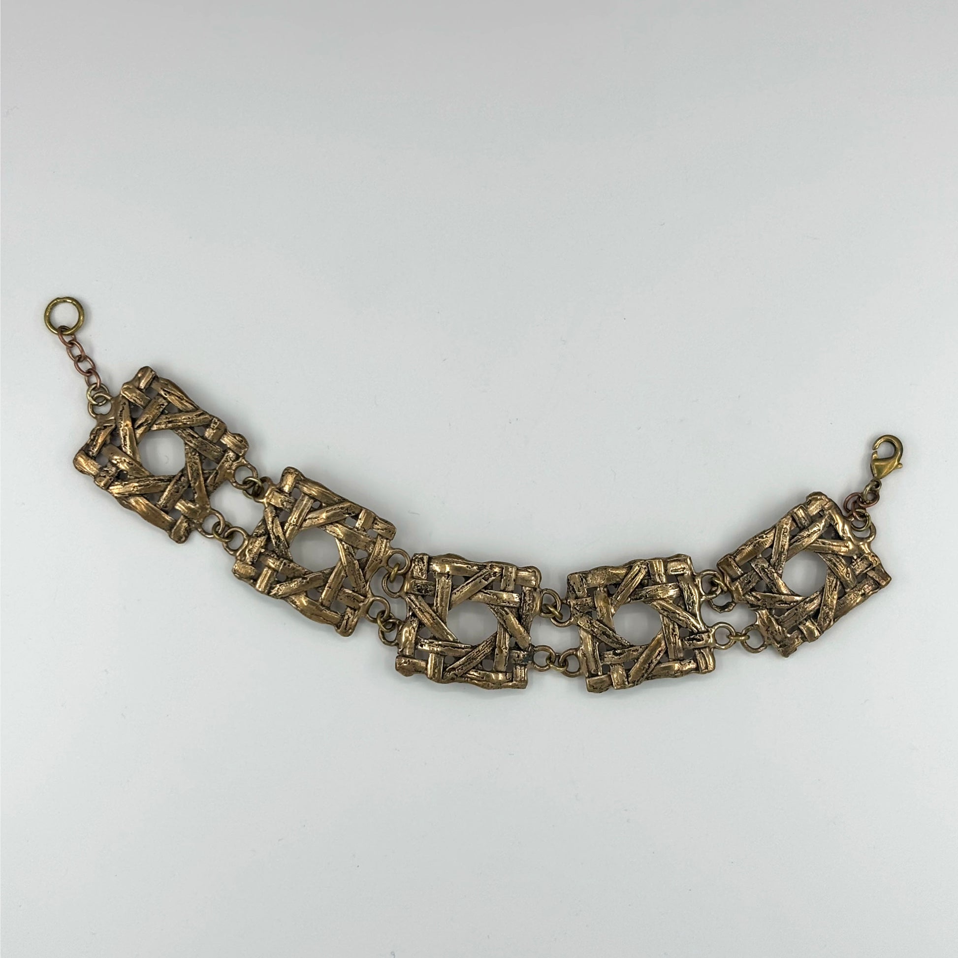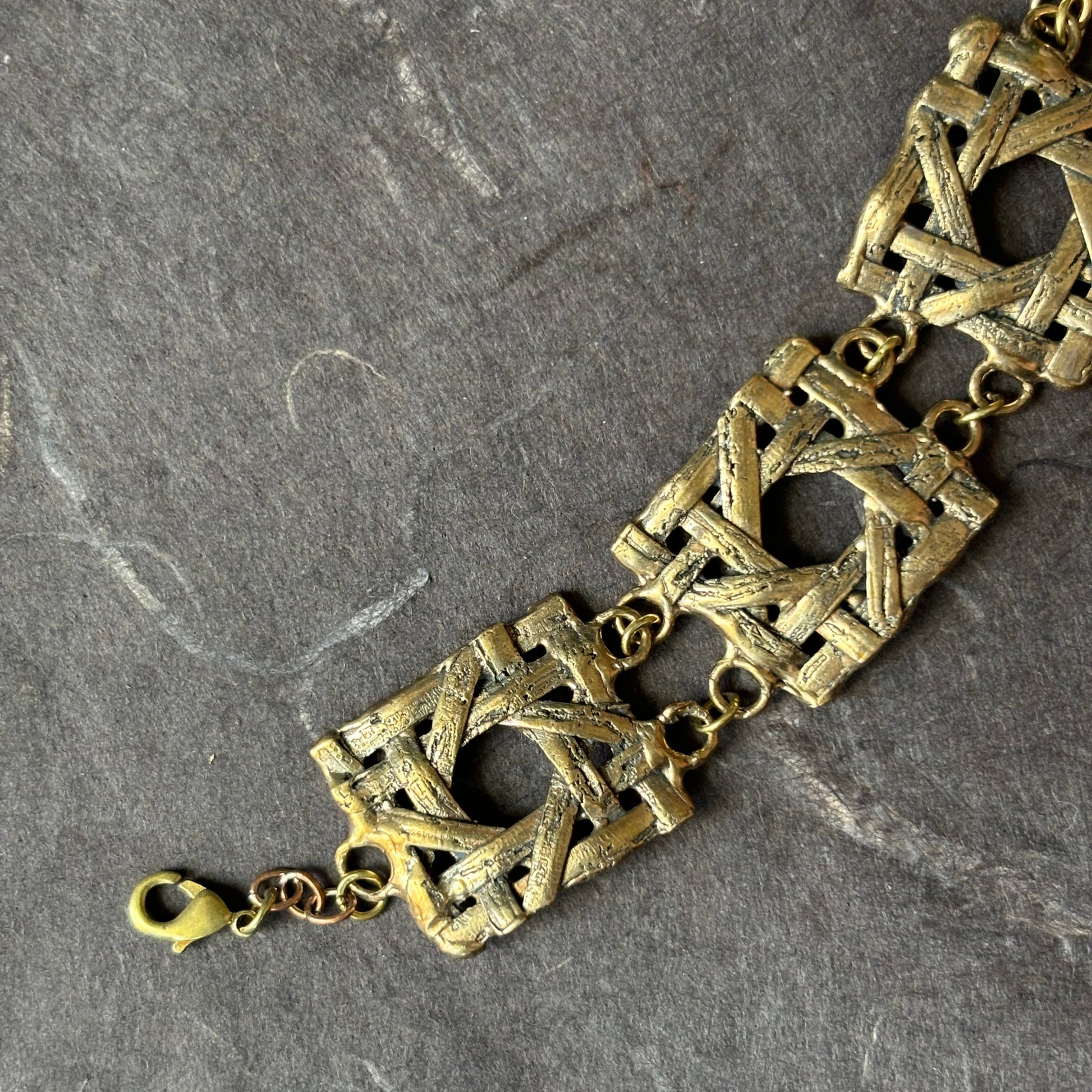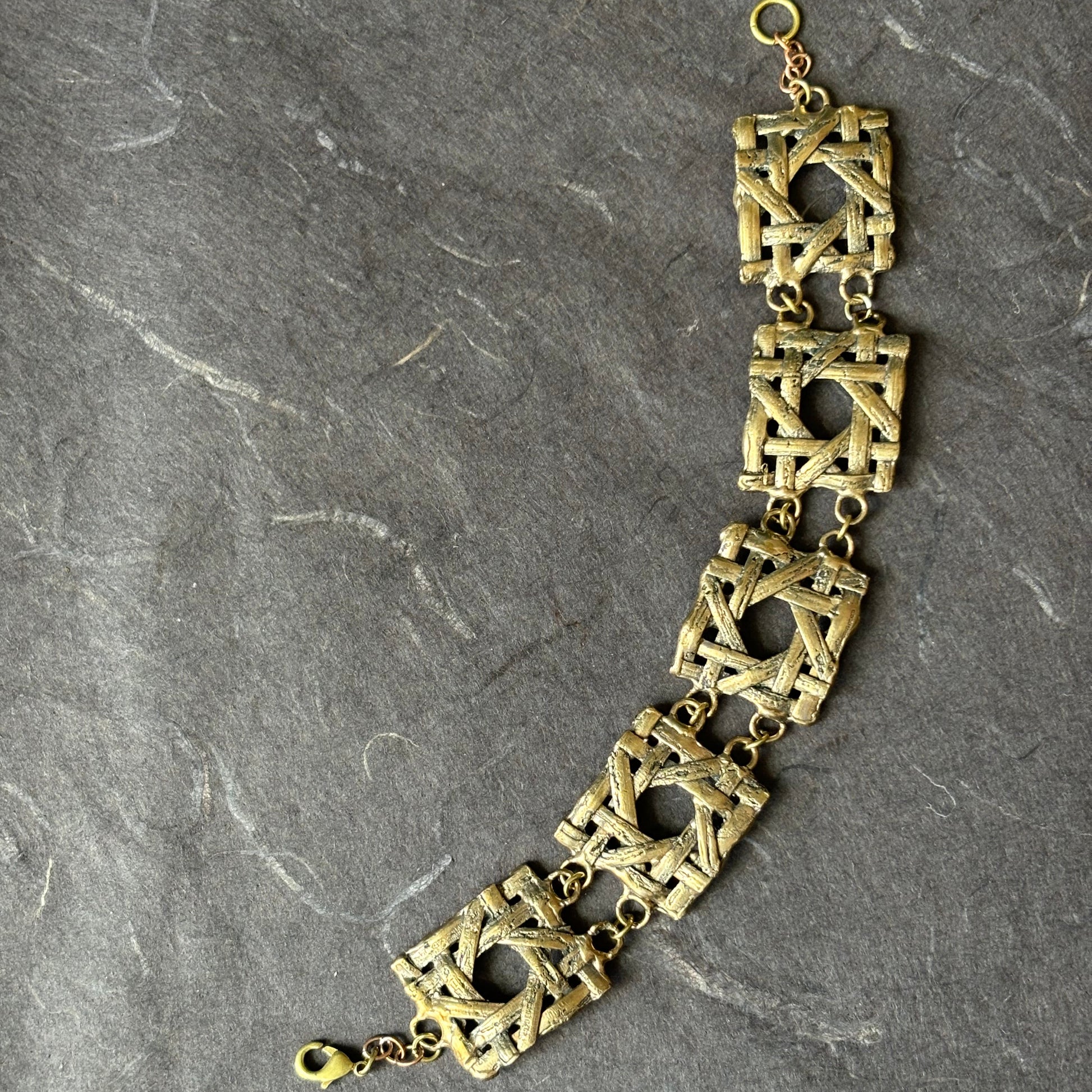 Inspired by the timeless elegance of vintage cane furniture, the bronze Wickerwork bracelet features an open lattice design cast in bronze. Its sculptural form blends organic texture with architectural structure, making it a bold yet lightweight statement piece.