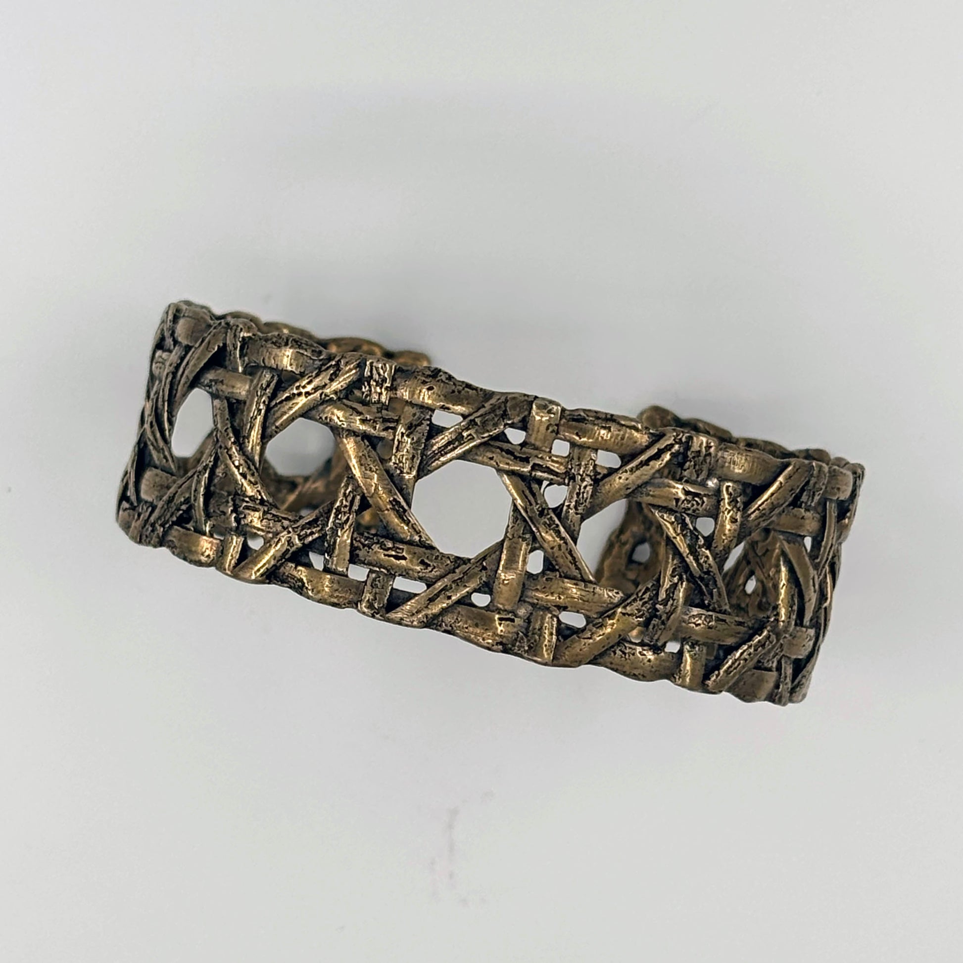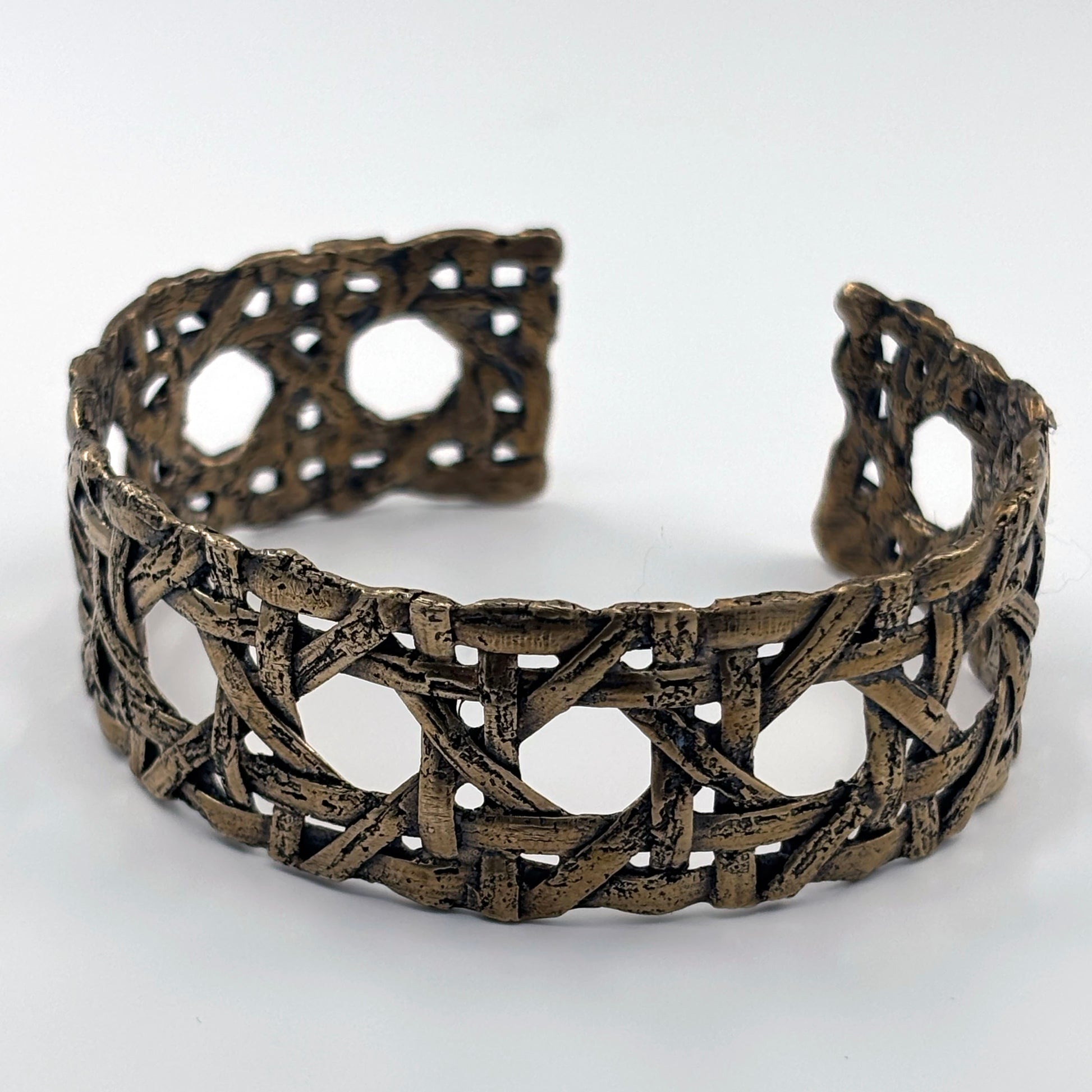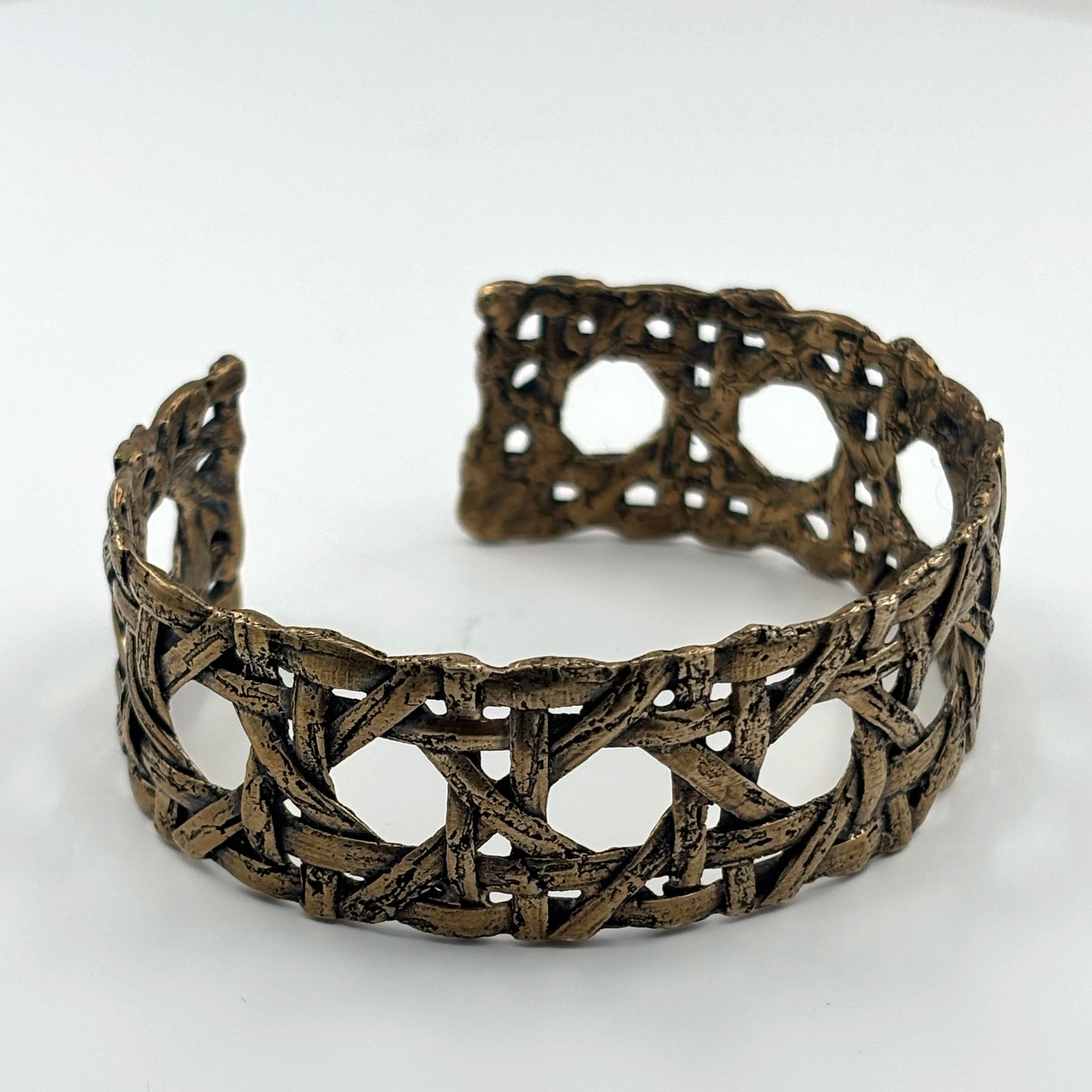 Inspired by the timeless elegance of vintage cane furniture, the bronze Wickerwork cuff features an open lattice design cast in bronze. Its sculptural form blends organic texture with architectural structure, making it a bold yet lightweight statement piece.